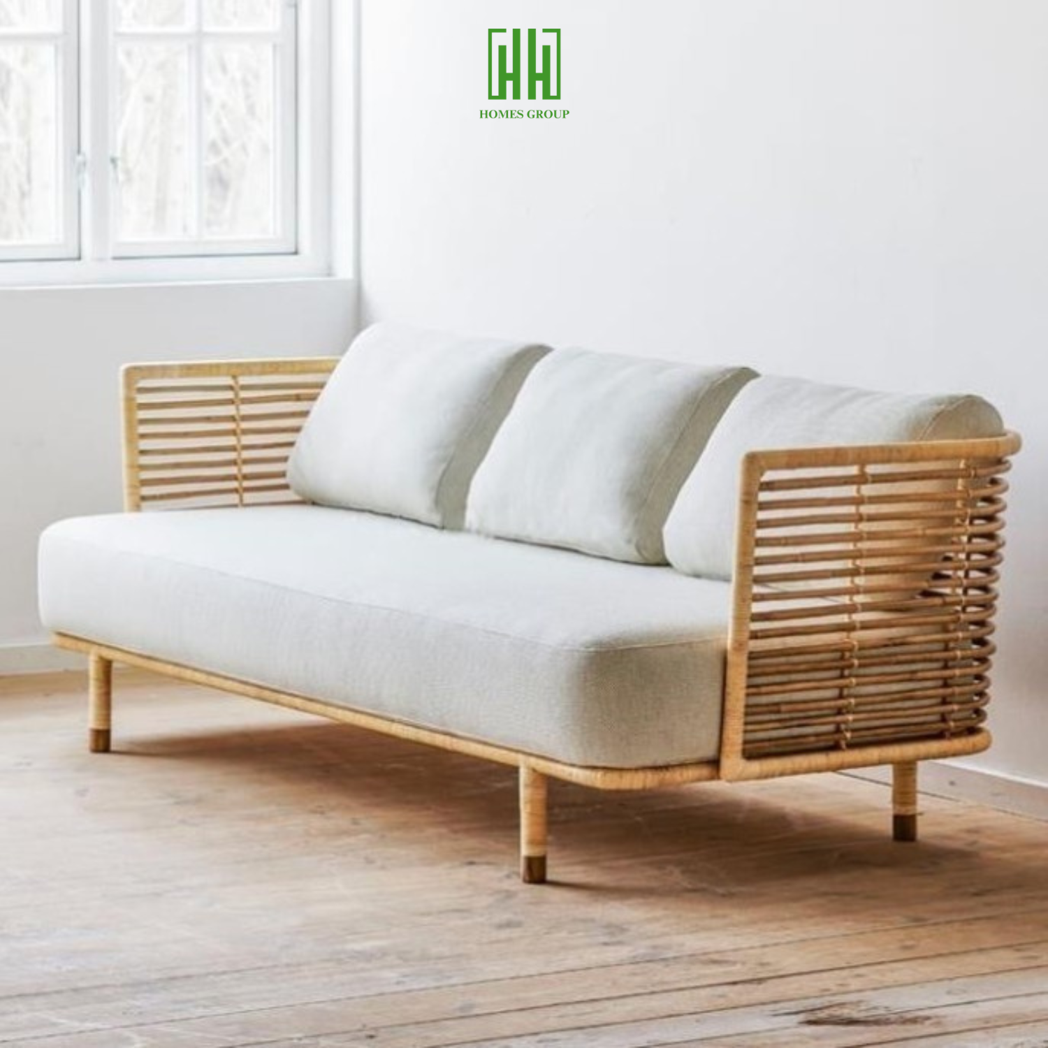 Với màu sắc mây tự nhiên sang trọng dễ dàng kết hợp với nhiều không gian nội thất như nâu, vàng, trắng… Kèm theo đó là chất liệu đệm sofa cao cấp tone màu hài hòa tạo nên cho không gian nội thất vẻ đẹp riêng biệt.