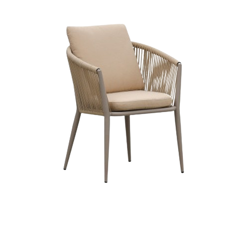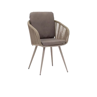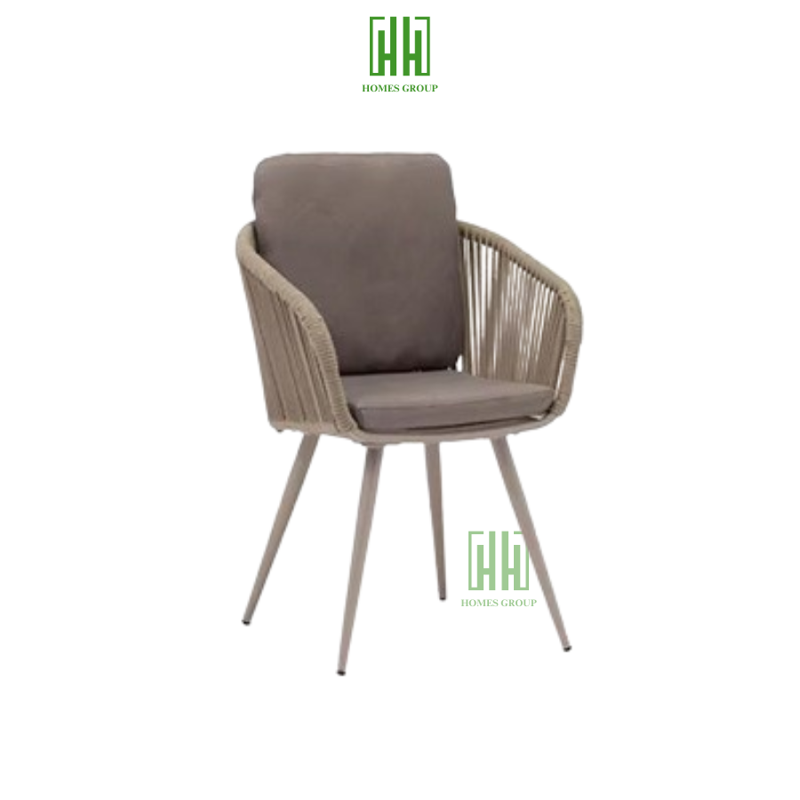 Phần ngồi và tựa lưng của ghế được đan thủ công từ sợi mây nhựa cao cấp, mang lại cảm giác thoải mái, thoáng mát cho người sử dụng. Thiết kế ghế với các đường nét mềm mại và thanh thoát, phù hợp cho không gian quán cafe, nhà hàng, hoặc sử dụng tại gia đình.