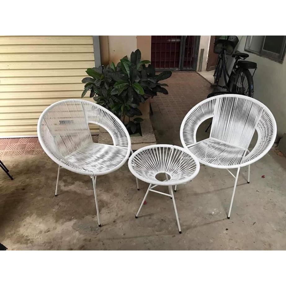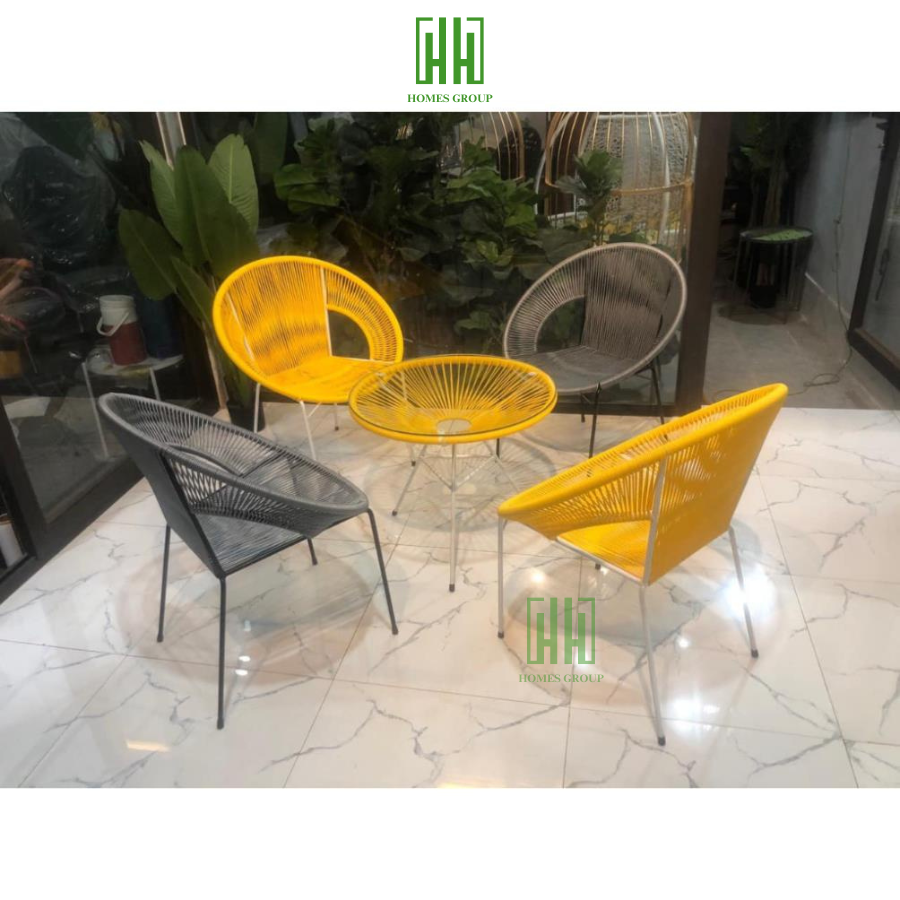 Ghế văng đuôi công dây nhựa khung thép cao cấp decor ban công quán cafe sân vườn