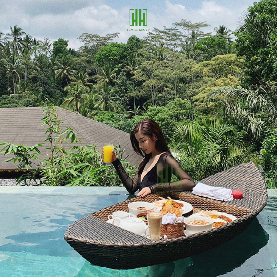 – Khay đồ ăn nổi được sản xuất theo dây chuyền công nghệ xịn xò nhất đã ra đời, giúp các chủ biệt thự, khách sạn, resort có thêm điểm cộng =>> giúp các thượng để khỏi cần sang Bali mà vẫn có thể có trải nghiệm sang + xịn + mịn ở Việt Nam nha