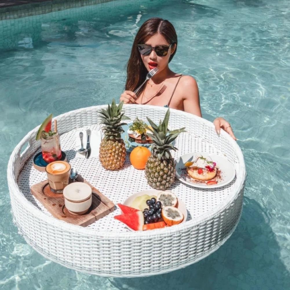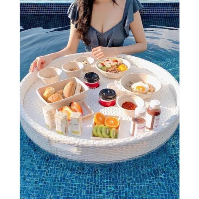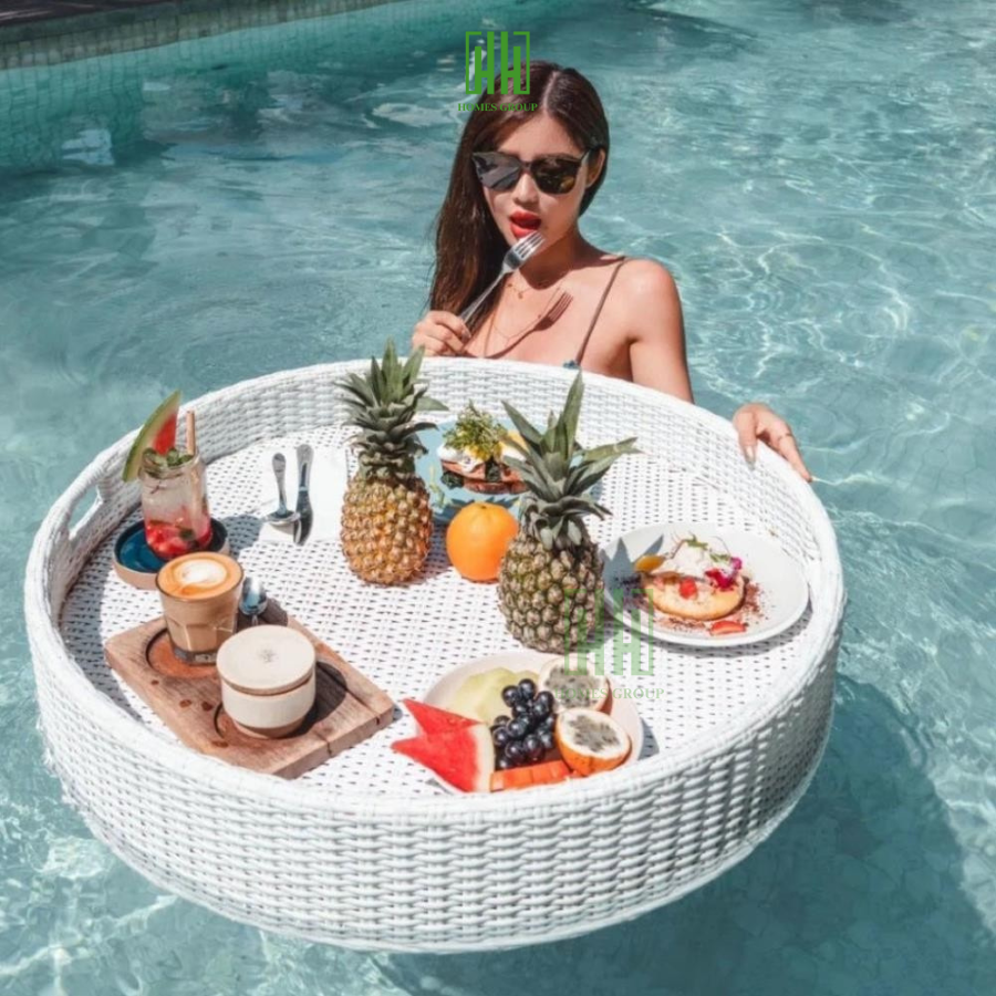 Khay nổi bể bơi hình tròn mây decor bể bơi, homestay