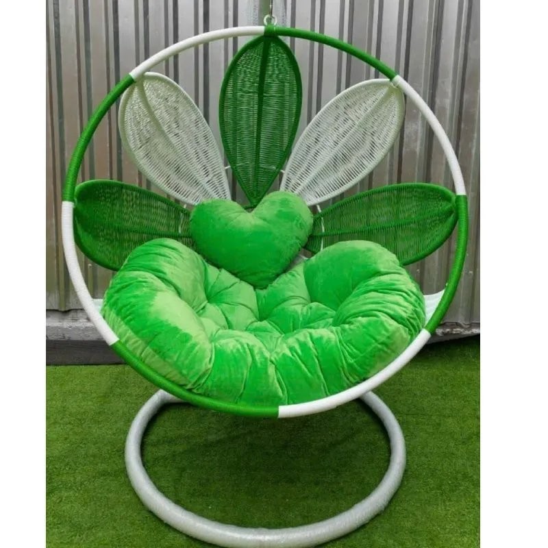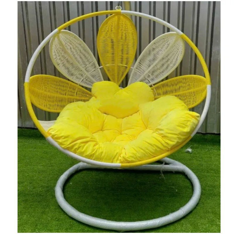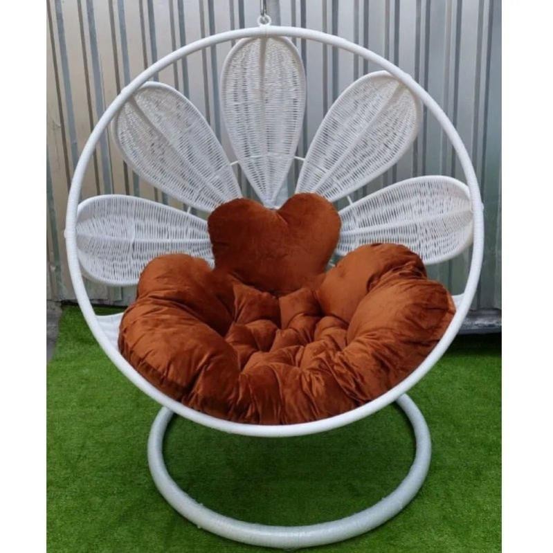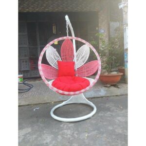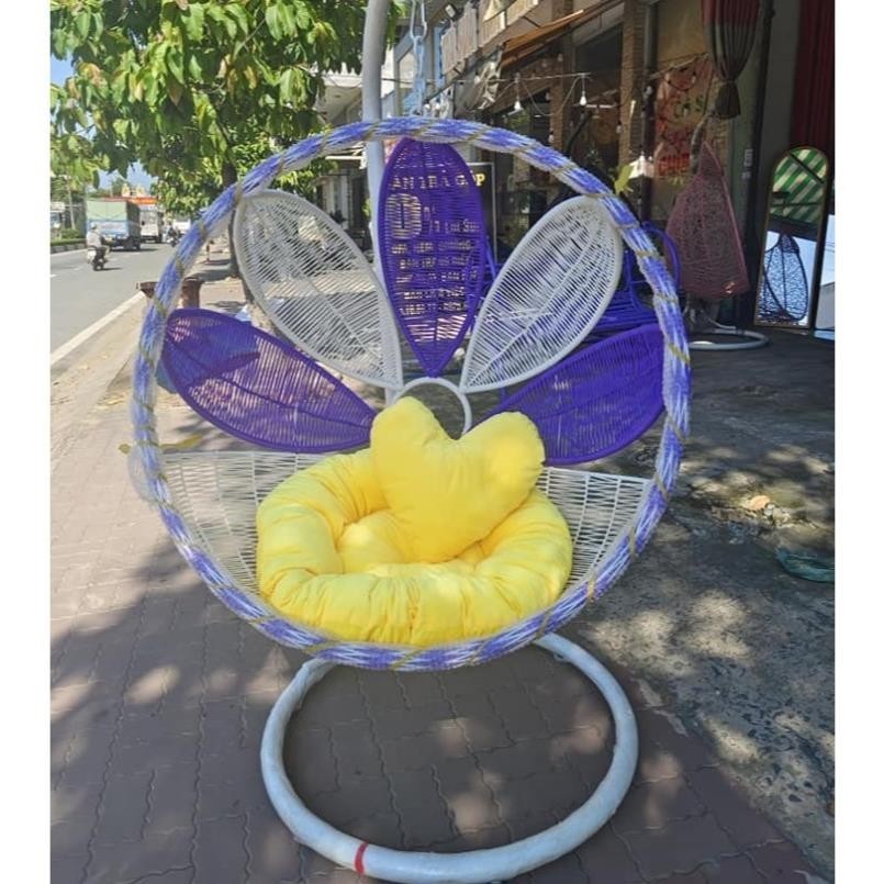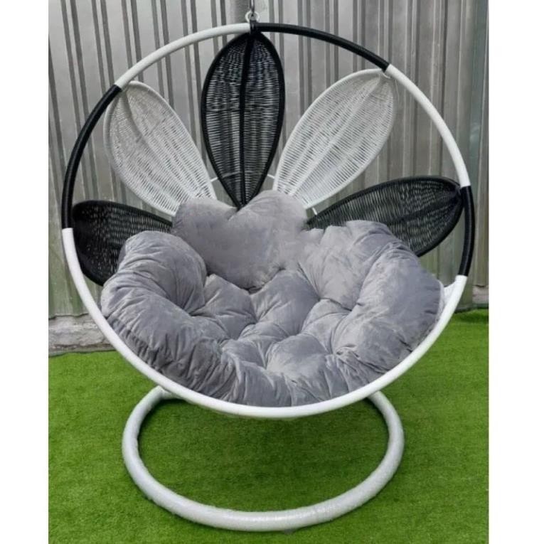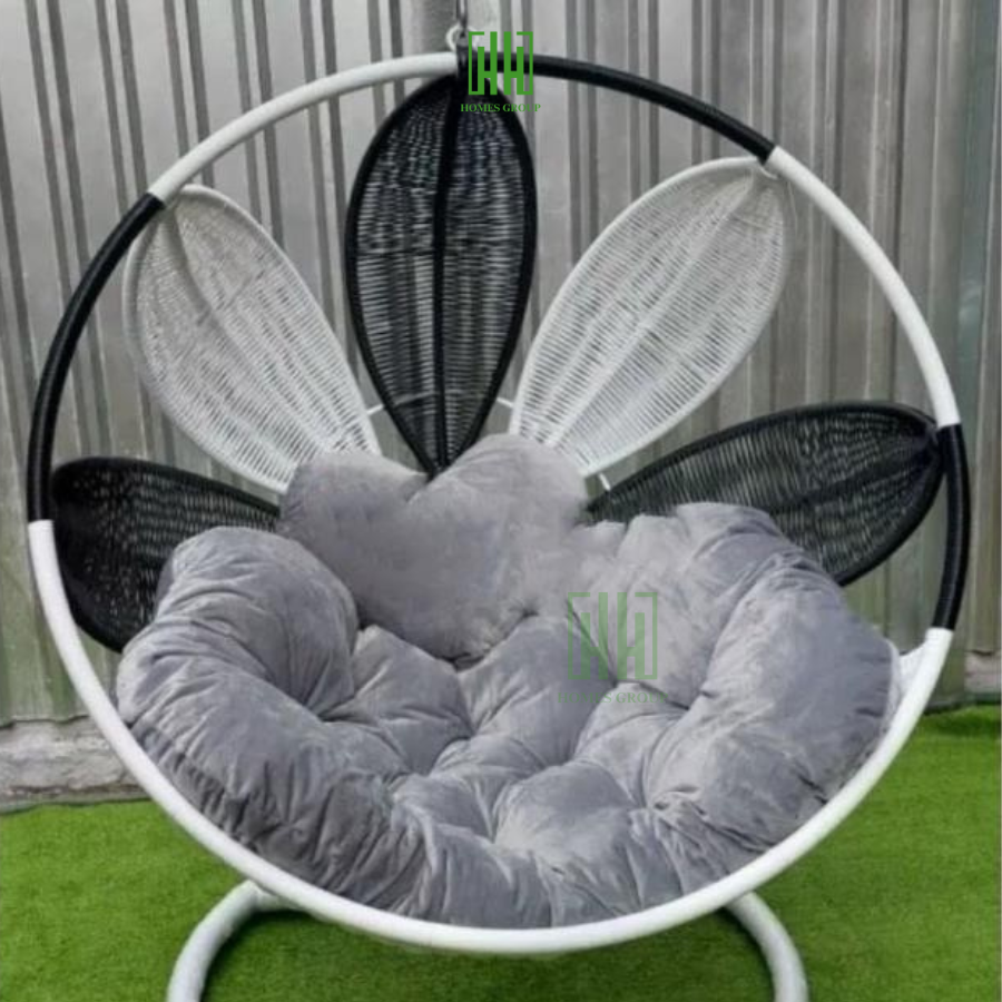 Xích đu cánh hoa decor ban công sân vườn quán cafe chất liệu giả mây lõi thép cao cấp