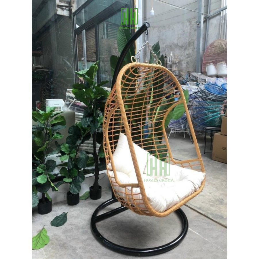 - Thành phần: Bao gồm ghế xích đu đơn với đế vuông, dây đan mây nhựa chắc chắn và đệm ngồi mềm mại.