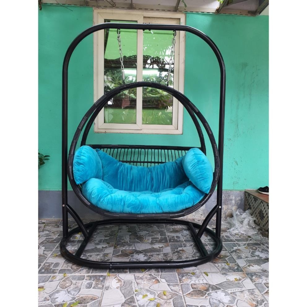 Xích đu đôi giả mây lõi thép cao cấp trang trí ban công và sân vườn bảo hành 24 tháng