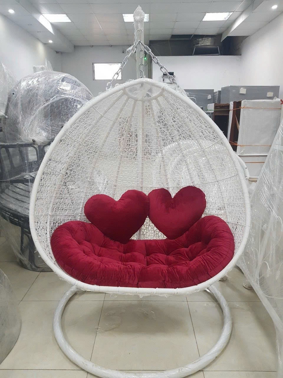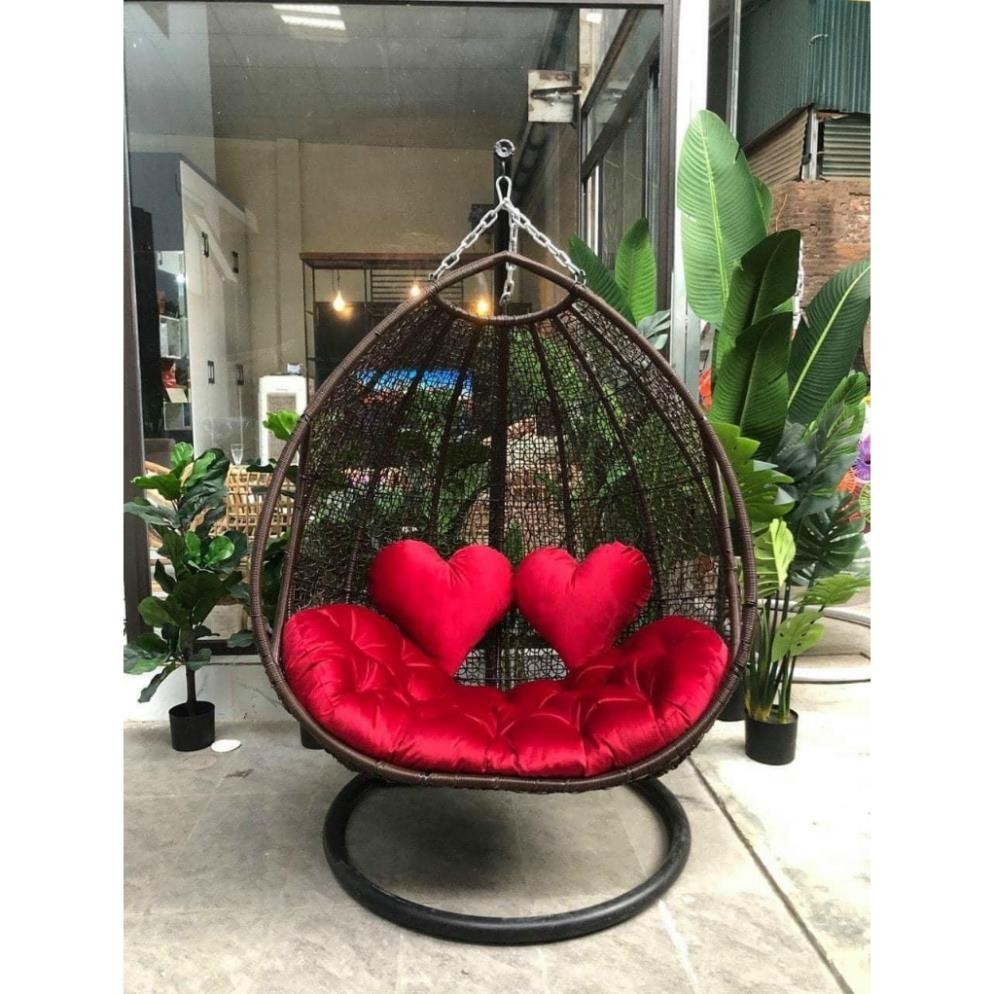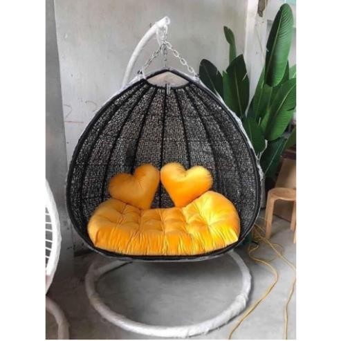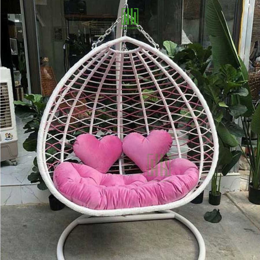 Xích đu đôi giả mây lõi thép cao cấp trang trí ban công và sân vườn