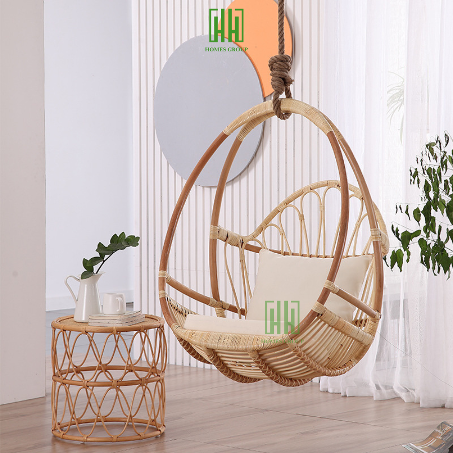 Xích đu mây cao cấp decor sân vườn, trang trí ban công, ghế tổ chim cho bà bầu thư giãn