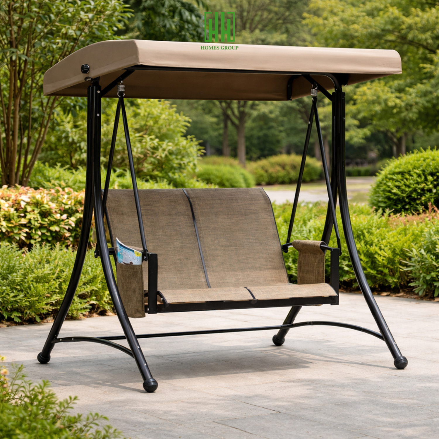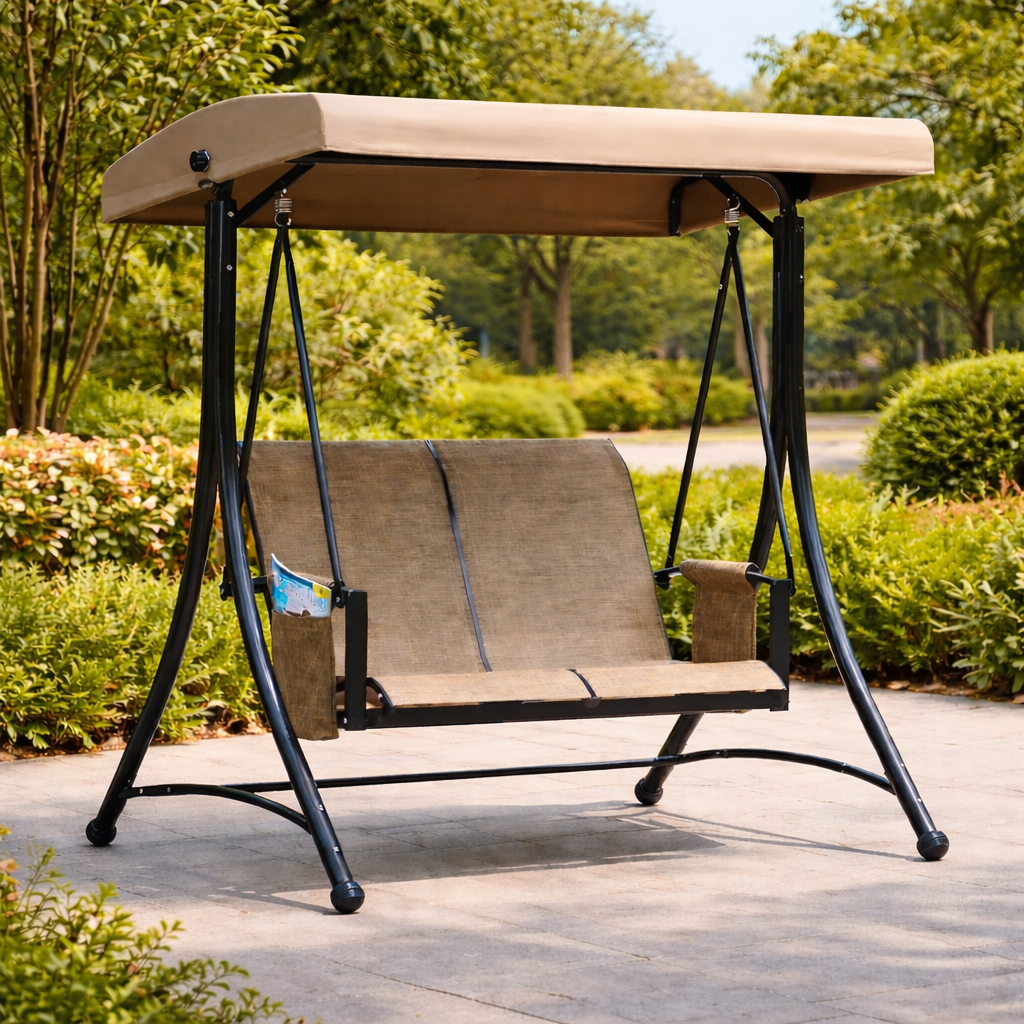 Xích đu ngoài trời bằng sắt 2 chỗ ngồi có mái che là sản phẩm lý tưởng cho không gian sân vườn, ban công hoặc sân thượng, mang đến trải nghiệm thư giãn thoải mái và hiện đại.