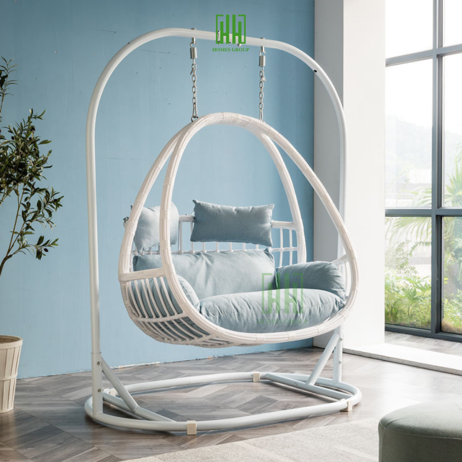 Xích Đu Phượng Hoàng Đôi Đen Khung Sắt Sơn Tĩnh Điện Cuốn Mây Nhựa Cao Cấp