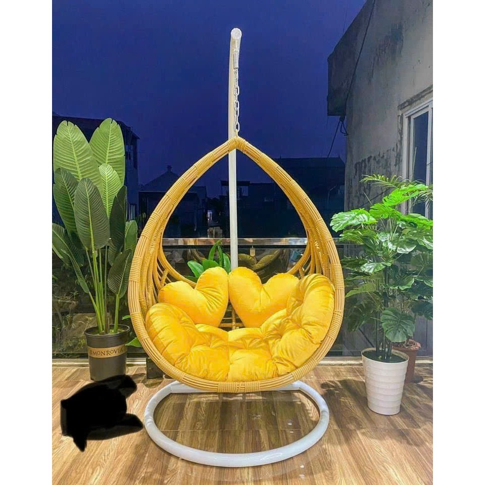 Xích đu phượng hoàng đơn thư giãn kèm nệm decor sân vườn ban công