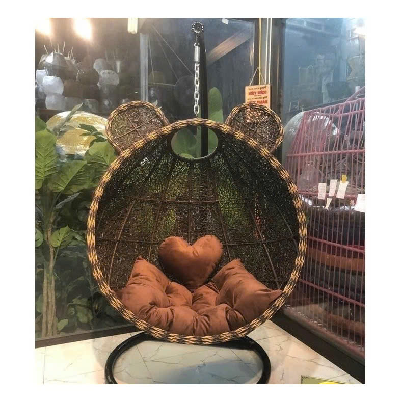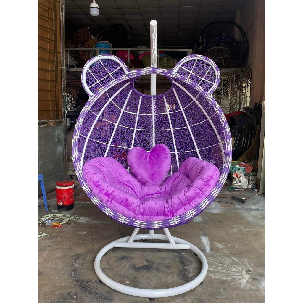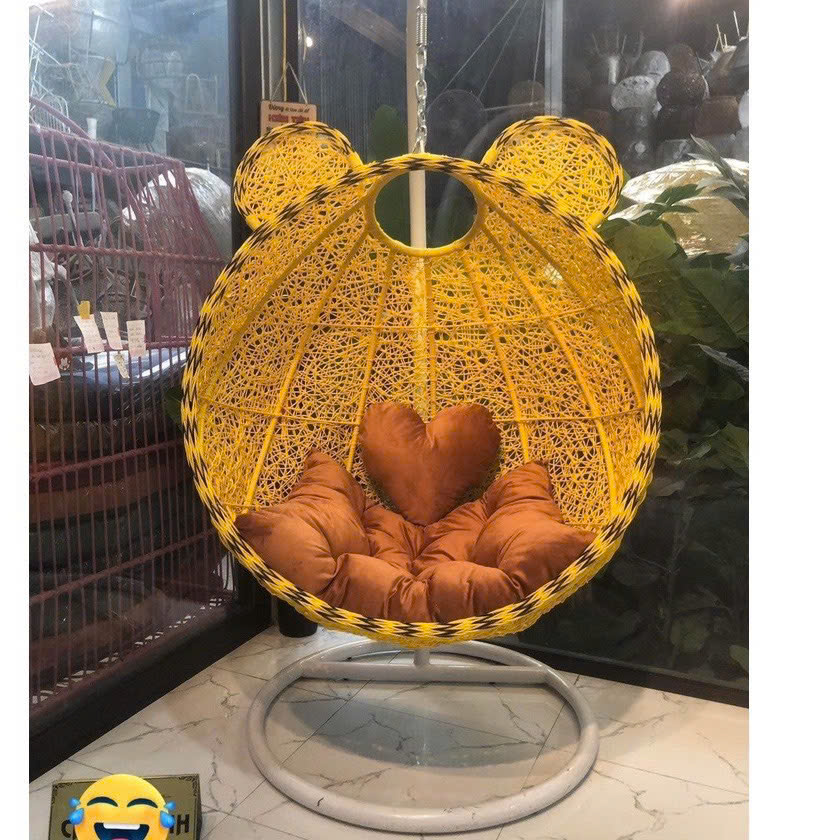 Xích đu tai thỏ giả mây lõi thép cao cấp trang trí ban công và sân vườn, ghế thư giãn