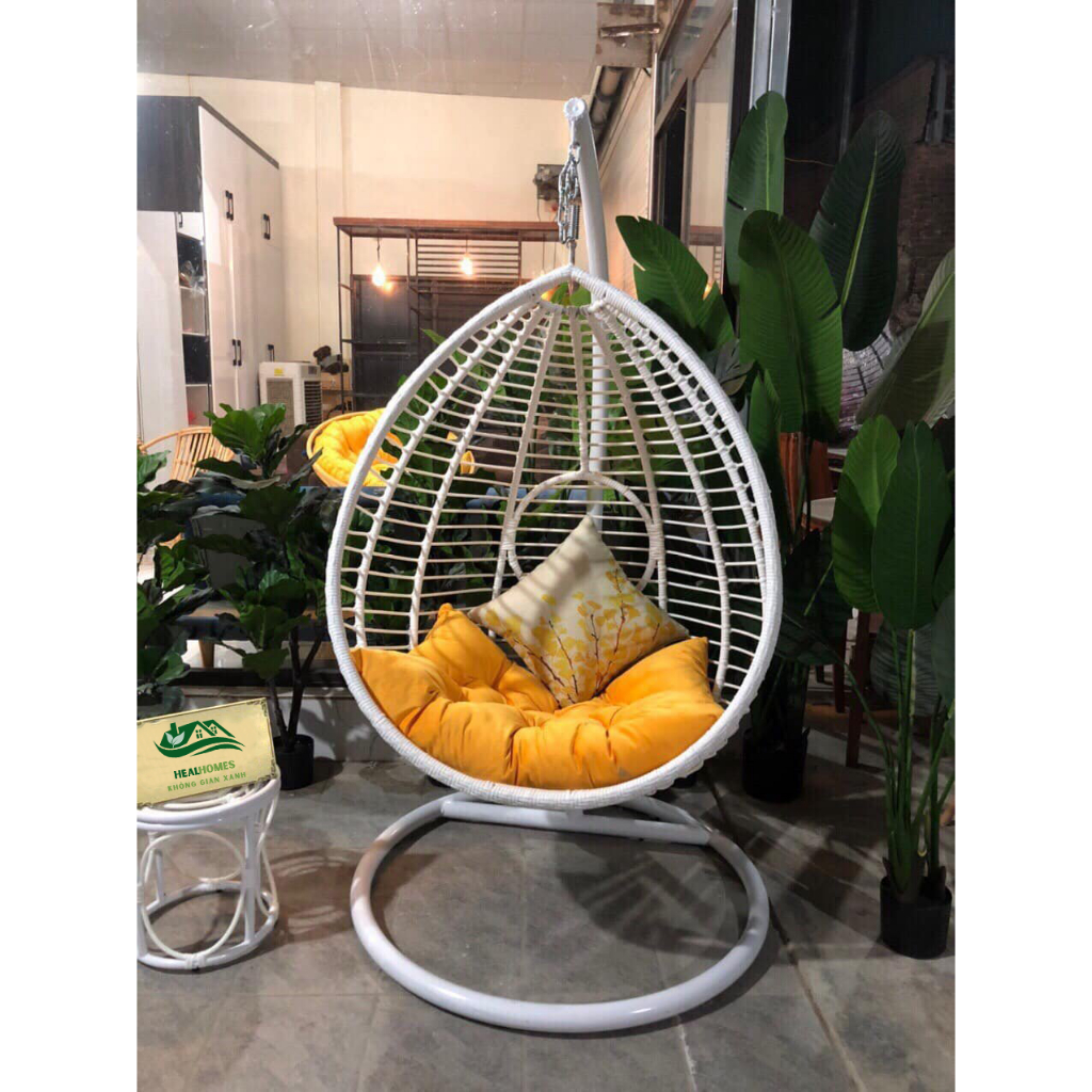 Xích đu thanh đơn giọt nước giả mây cao cấp decor ban công sân vườn