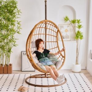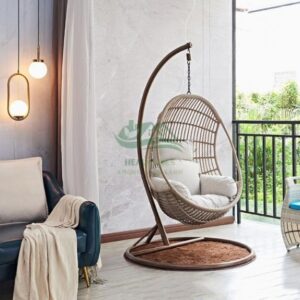 – Xích đu đơn: chất liệu mây nhựa (nhựa giả mây) – Khung sắt hình dáng giống tổ chim, giọt nước, ghế trứng hoa văn, ….